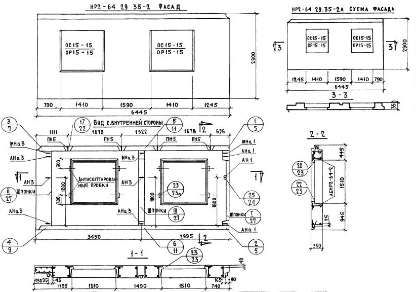 НР2-64.29.35-2   Наружная стеновая панель рядовая по Серии 1.132-1.