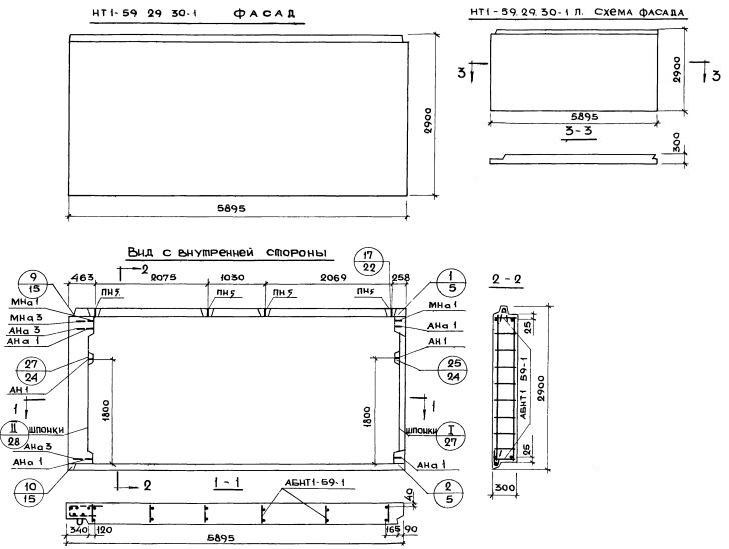 НТ1-59.29.30-1л   Наружная стеновая панель торцевая по Серии 1.132-1.