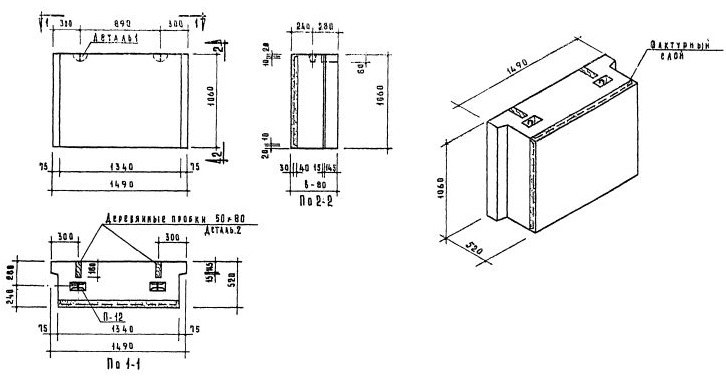 Стеновые легкобетонные блоки толщиной 60 см по Серии 1.133-1.